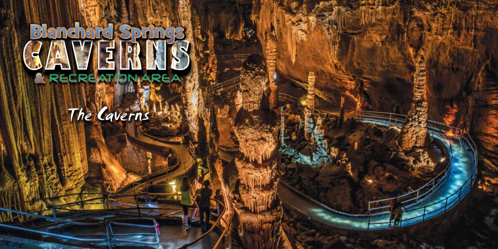 Blanchard Springs Caverns, located in the Ozark National Forest of Arkansas, is one of the most beautiful caves in the country, often described as a “living” cave because its formations continue to grow. This cave is a hidden gem, with fewer crowds but equally impressive formations that include massive columns, flowstone, and draperies.